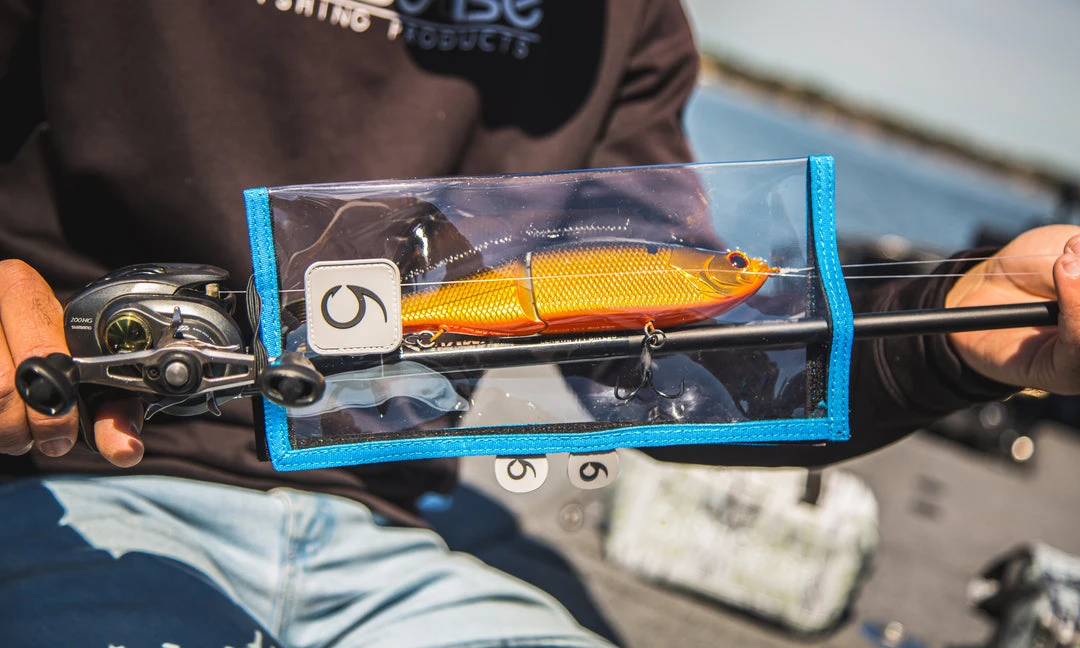 Protect your arsenal. The 6th Sense Bait Cover was designed to protect your equipment. Made high grade, reinforced, sewn nylon, this bait cover is made to last. With super strong velcro on three sides, the bait cover is easily attached and removed. This product helps keep your lures protected, as well as, keeping your rod locker as tangle free as possible. The worst is going to pull a rod out of storage and having multiple treble hooks tangled, the 6th Sense Bait Cover prevents that from happening. Coming in 3 different sizes, you are able to protect all lures from small crankbaits to A-rigs/Glide baits.