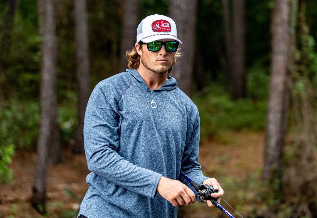 The 6th Sense Sensory hooded sun shirt is the latest and greatest addition to our apparel lineup. The Sensory is built for comfort, the premium cotton/polyester blend will not disappoint and the clean, athletic style gives you the freedom to wear it wherever you please. Designed for fishing, constructed for style.