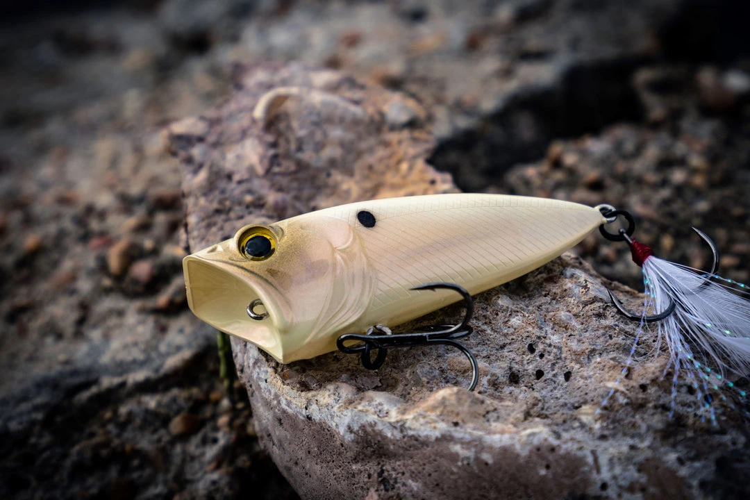 The 6th Sense (silent) SplashBack Popper will bring new life to your popper arsenal with a design and shape that has revolutionized topwater fishing. Utilizing a unique ‘vee’ keel style and flat sided shape, the SplashBack cuts through water with ease, making ‘walking the dog’ an easy task. The extra-wide mouth spits and chugs like no other surface lure while still creating the classic “bloop” sound when needed. At rest, the flat side profile results in side-to-side movement. On top of all that, realistic 3D eyes and lifelike surface detail give you the most versatile topwater out there.